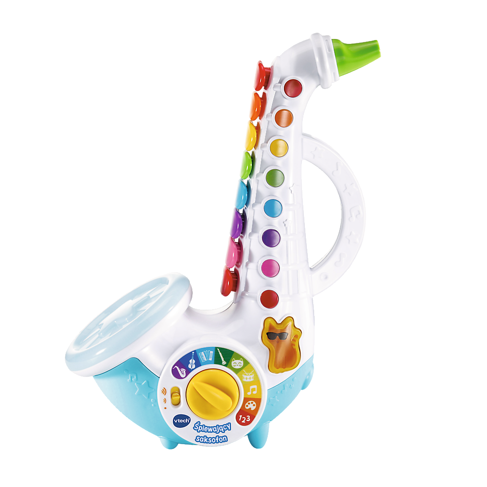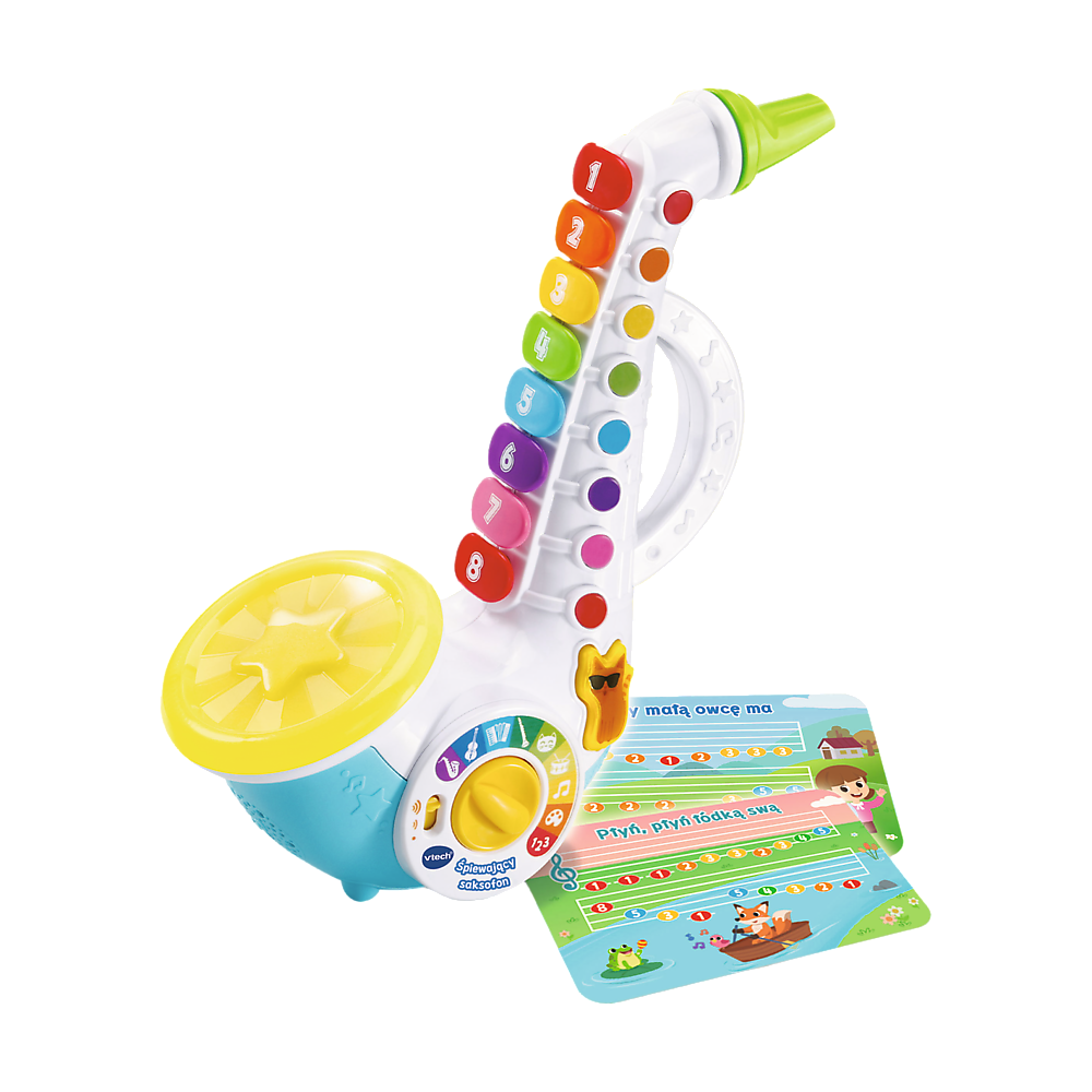 The Singing Saxophone introduces your child to music, instruments, numbers, and colors, all set to cheerful jazz rhythms. Two music cards guide their first musical steps, and a convenient handle ensures portability.