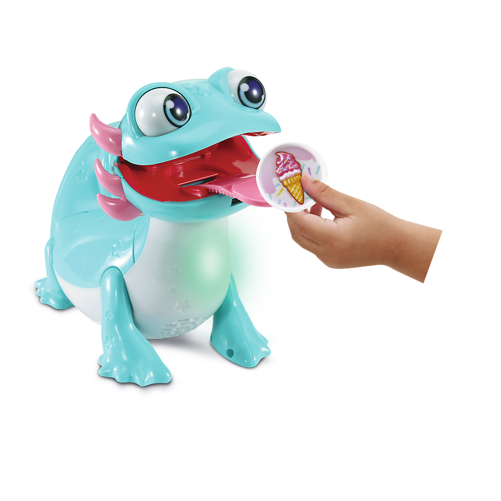 Meet Gourmand Axolotl, with an enormous appetite! Offer him a snack to sniff, then place it on his tongue. He’ll describe the taste, and his belly will glow with colors. After his meal, play with Axolotl – he’ll sing food songs and share fun facts. Get ready for a delicious feast!